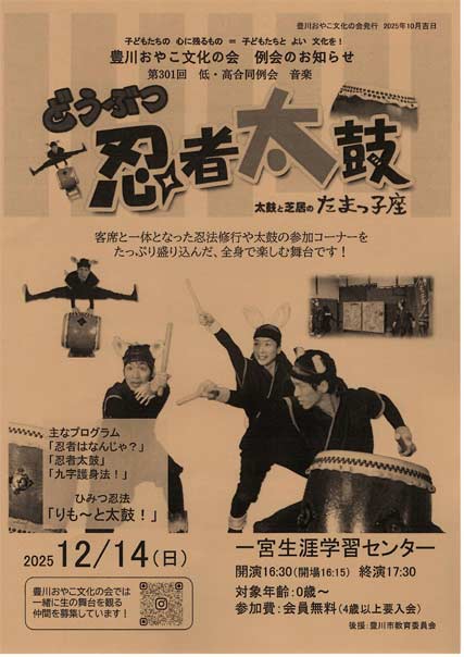 | どうぶつ忍者太鼓 12月14日(日) 豊川おやこ文化の会 | |