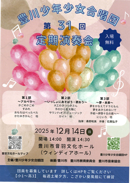 | 豊川少年少女合唱団 第31回定期演奏会 12月14日(日) |