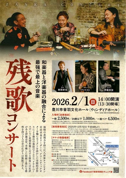 | 和楽器と洋楽器の融合による最強で最上の音楽 残歌コンサート 豊川市音羽文化ホール 2026.2.1(日) |