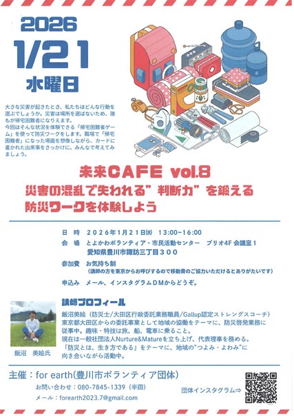 | 災害の混乱で失われる”判断力”を鍛える防災ワーク 1月21日(水) for earth | |