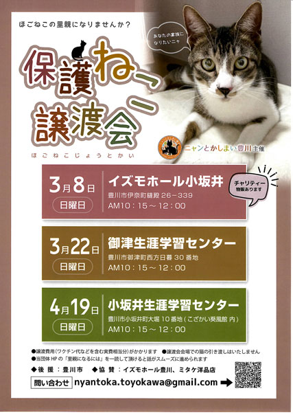 保護ねこ譲渡会 にゃんとかしまい豊川主催