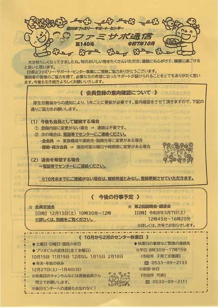 ファミサポ通信 第140号 10月発行 豊川市ファミリー・サポート・センター