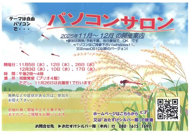 おたすけシルバー隊 パソコンサロン11月〜12月