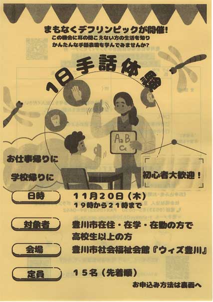 まもなくデフリンピックが開催! 一日手話体験 11月20日(木)