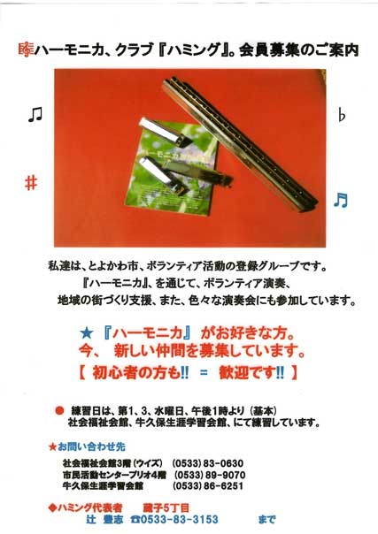 | ハーモニカ、クラブ『ハミング』会員募集 |